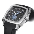 Manufactured for victory, assembled for greatness, and destined for timeless success, this automatic timepiece takes statement-making to new levels, with its dominant square case in stainless steel showcasing a jet-black dial.